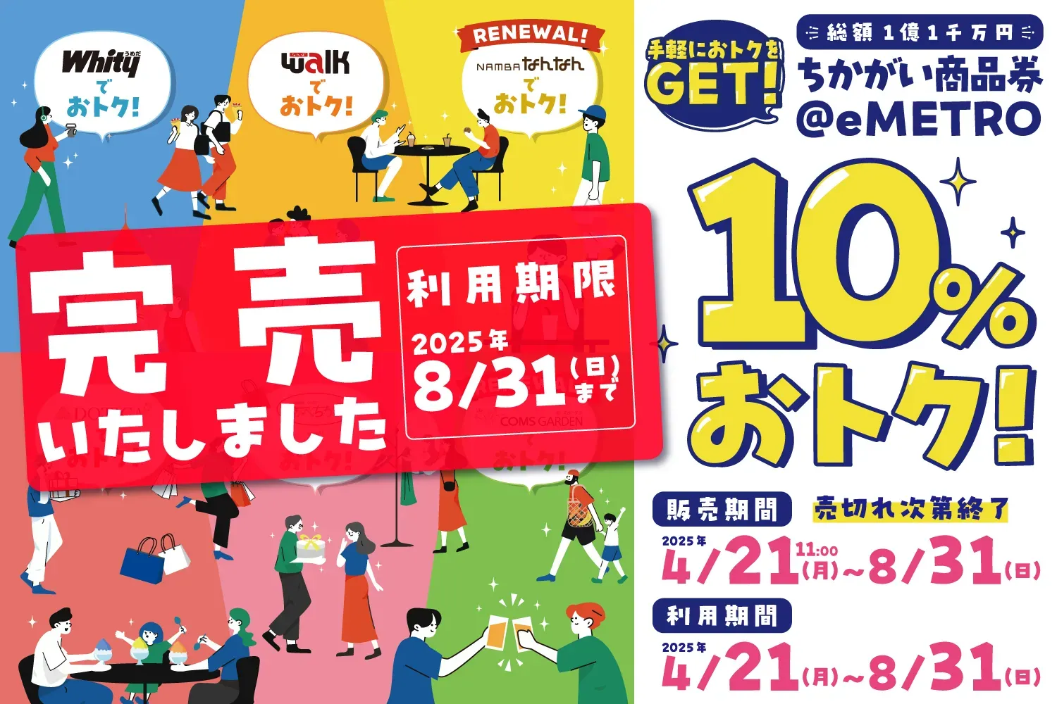 “Chikagai Gift Certificate @ eMETRO” with 10% premium has been sold out at 7:00 AM on May 28, 2025 (Wednesday), and the purchase price has reached a total issue of 110 million yen.